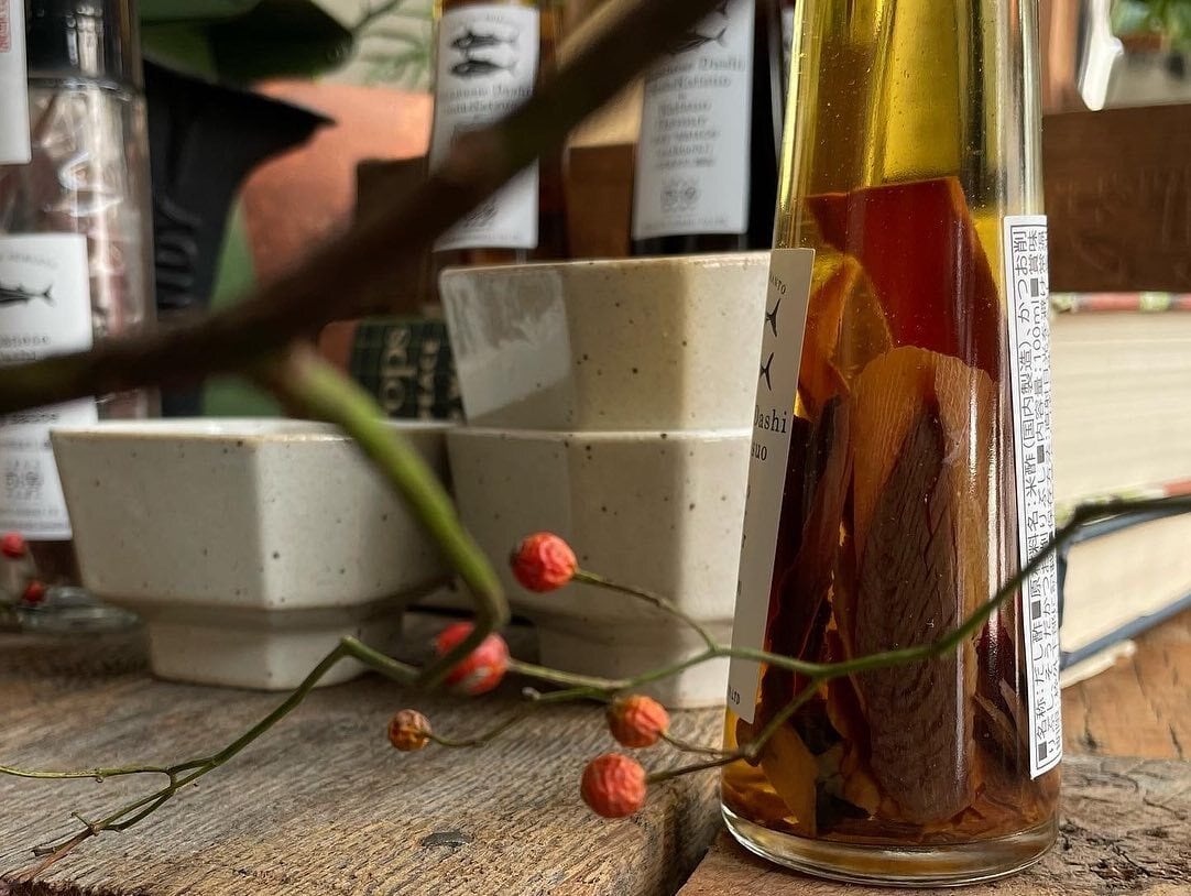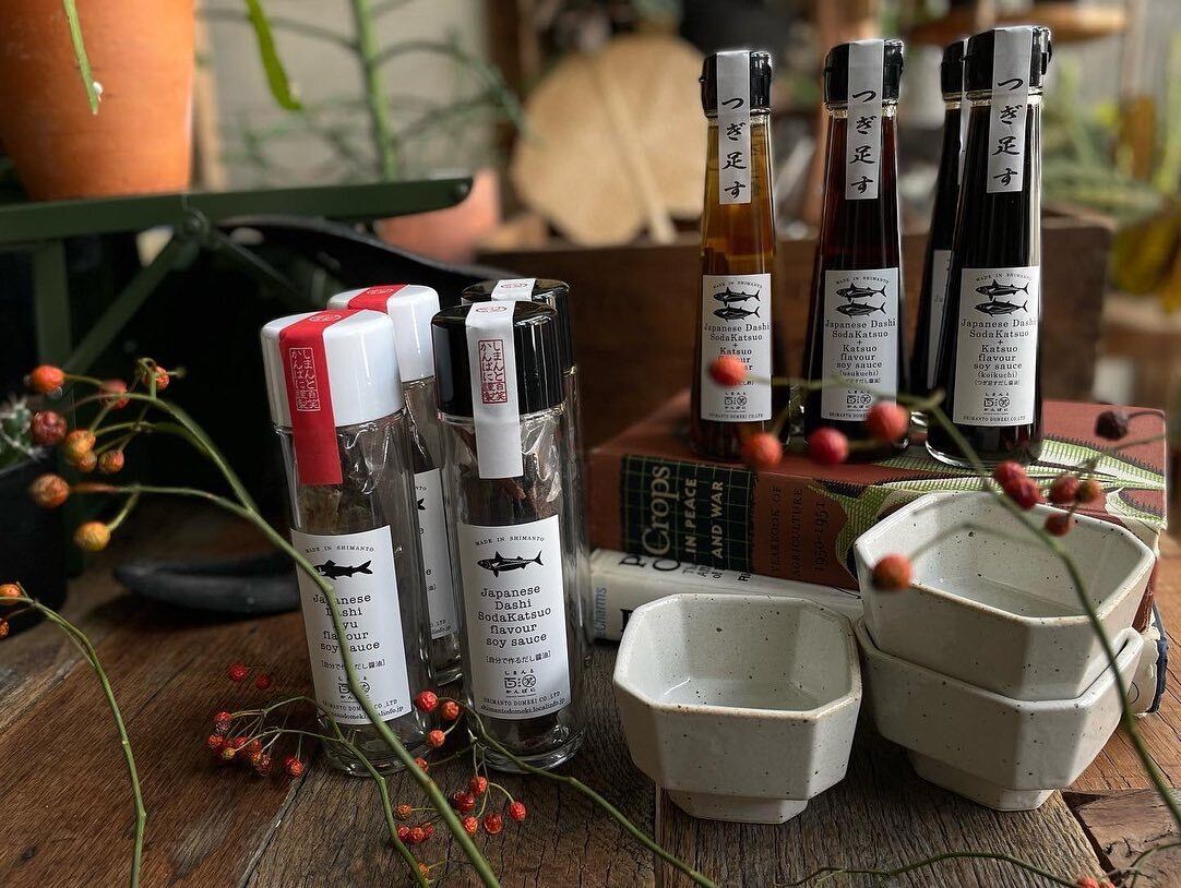 Japanese Dashi Katsuoflavor soysauceは、これぞニッポンの味!を実現した他にはないだし醤油です。ビンの中には、高知県産そうだかつお節と国産かつお節を絶妙な割合で入れ、高知県四万十産の特別な醤油と無添加の米酢をそそいだ、味と香の利いただし醤油とだし酢のセットです。中のお醤油やお酢が半分程に減ってきたら継ぎ足して10回ほど使えます。